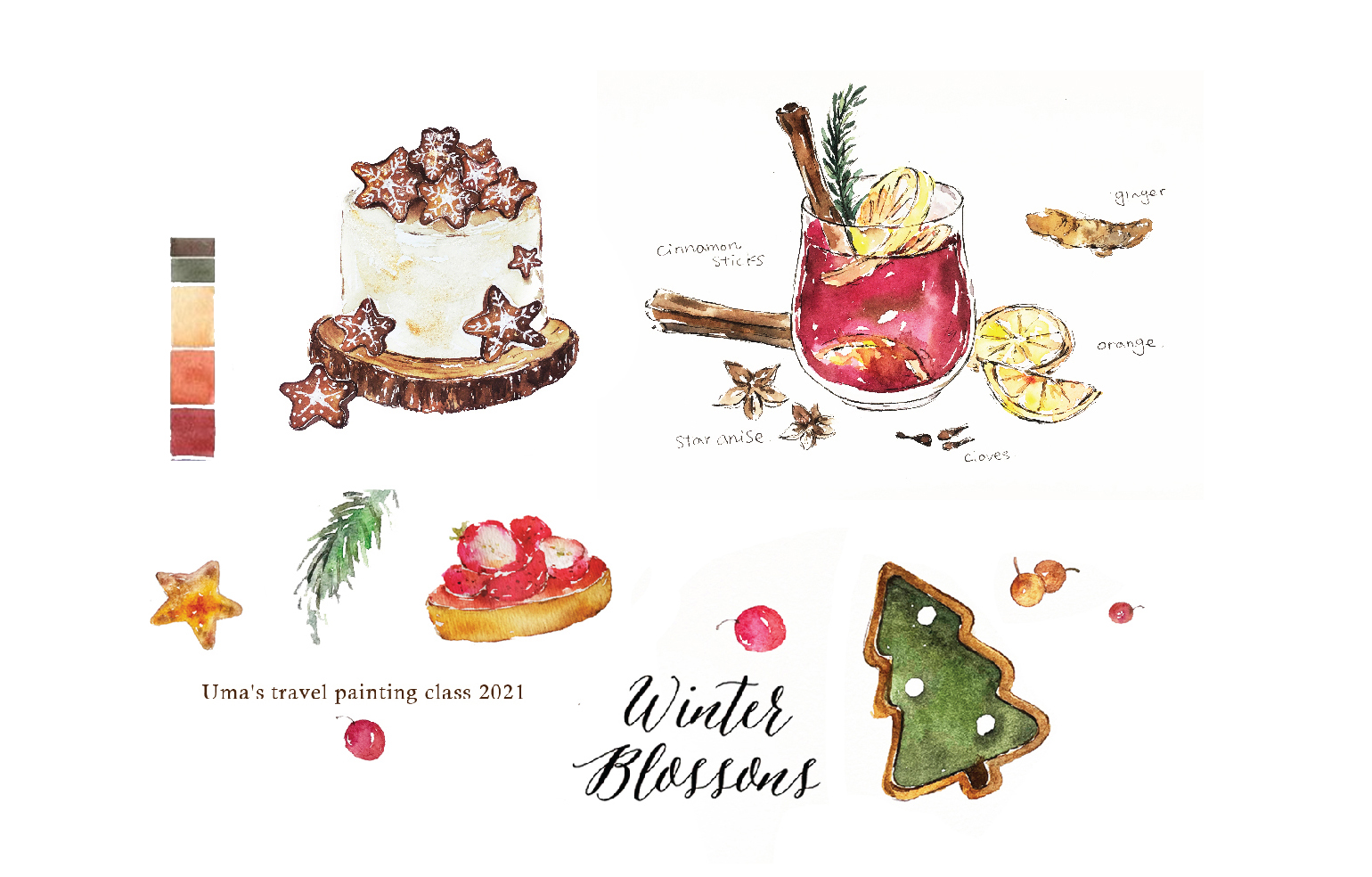 ▍繽紛色彩的甜點與熱紅酒,除了甜點形體掌握,更進入立體透視,以及如何好好吃的調色運用。